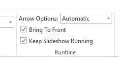 The option Bring To Front will check on a regular basis, that the running PowerPoint slideshow is running in foreground. Whenever there is an active PowerPoint slideshow running, but maybe not in foreground, then this PresentationPoint Slideshow add-on will set this slideshow as the application running in front.