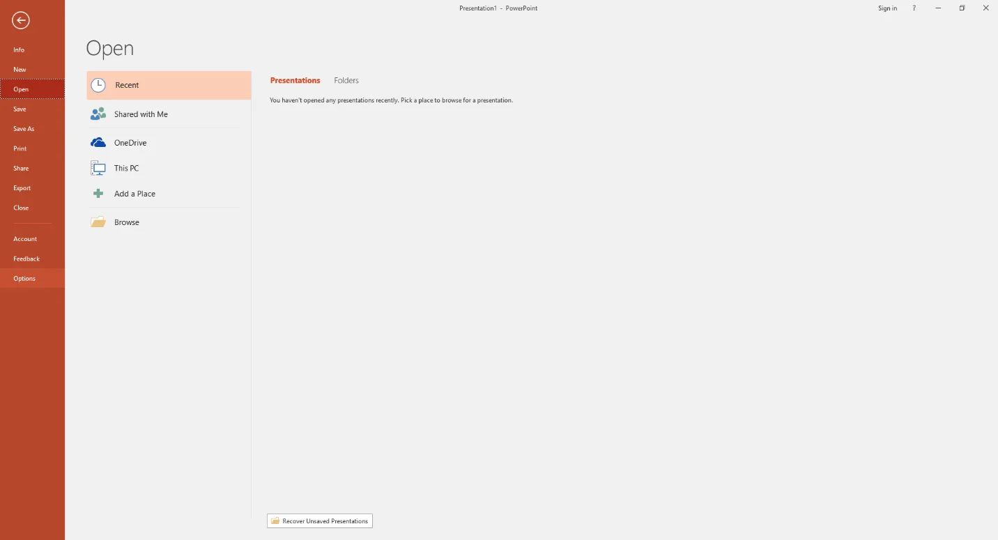 For every step that you take here, make sure that there is no PowerPoint process running anymore. First of all, close all visible PowerPoint instances on your computer. Then, use the task manager to check all running processes. If you find another PowerPoint process running, kill it.